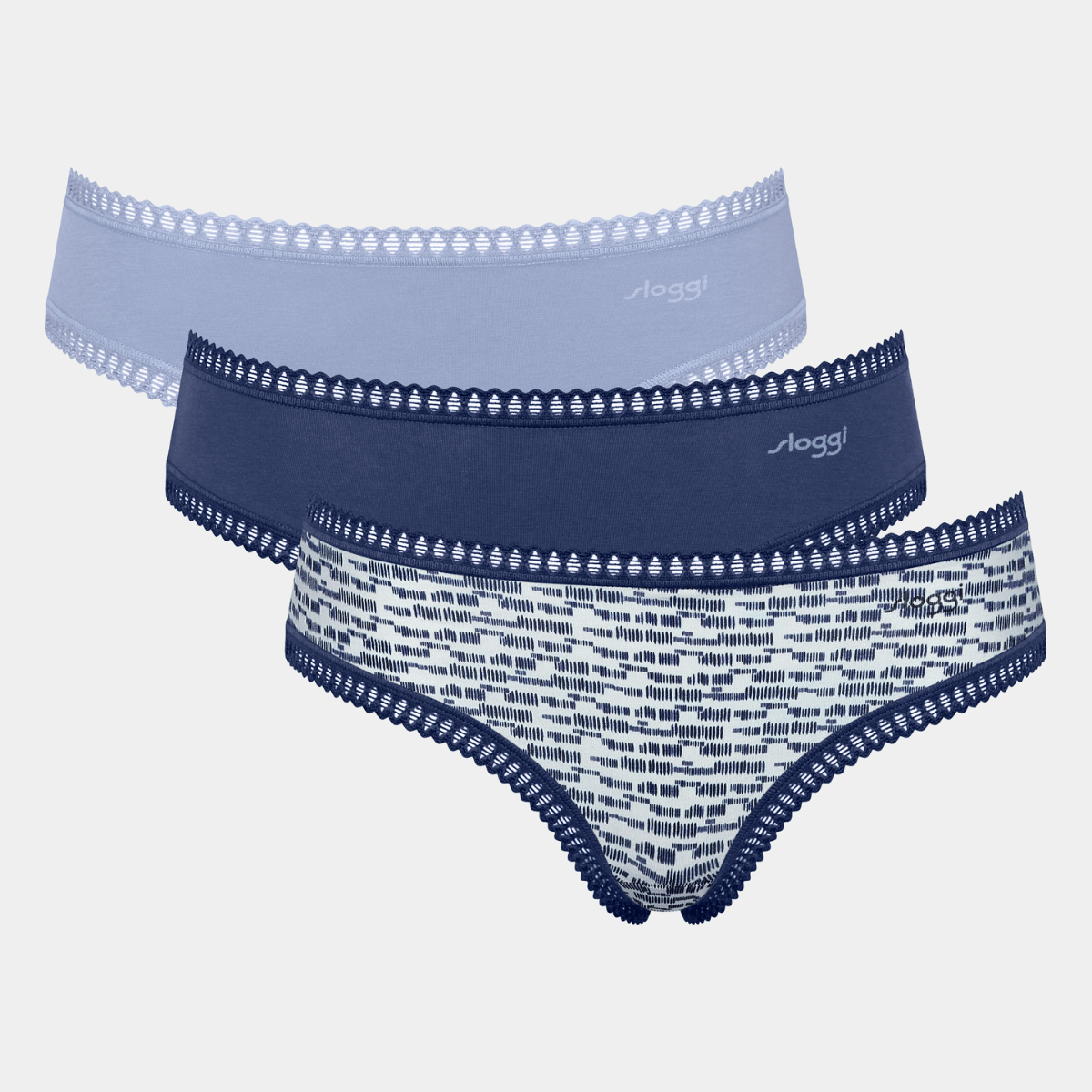 Hipster-Slips sitzen tief auf der Hüfte, sind vorne und hinten gleich breit geschnitten und bieten eine moderne Alternative zu klassischen Slips. Auf dieser Seite finden Sie eine große Auswahl an stilvollen Sloggi Hipster-Slips, die durch hohen Tragekomfort, exzellente Qualität und ansprechendes Design überzeugen. Unterwäsche erfüllt zwei zentrale Funktionen: Sie soll angenehm zu tragen sein und dabei nicht auf der Haut kratzen oder reizen. All das bieten Ihnen Hipster-Slips von Sloggi – ein verlässlicher Begleiter für jeden Tag.