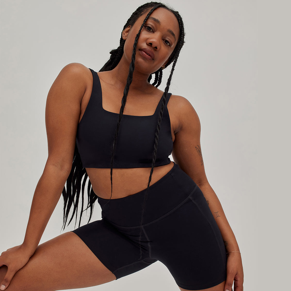 Girlfriend Collective Tommy Square Neck Sport BH, Schwarz