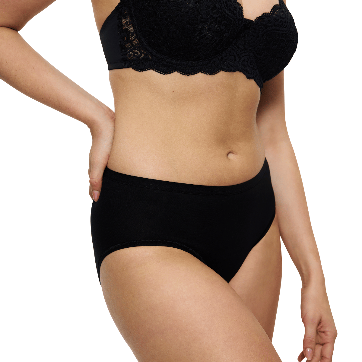 Triumph Sense Of Cotton Midi Slip, Schwarz